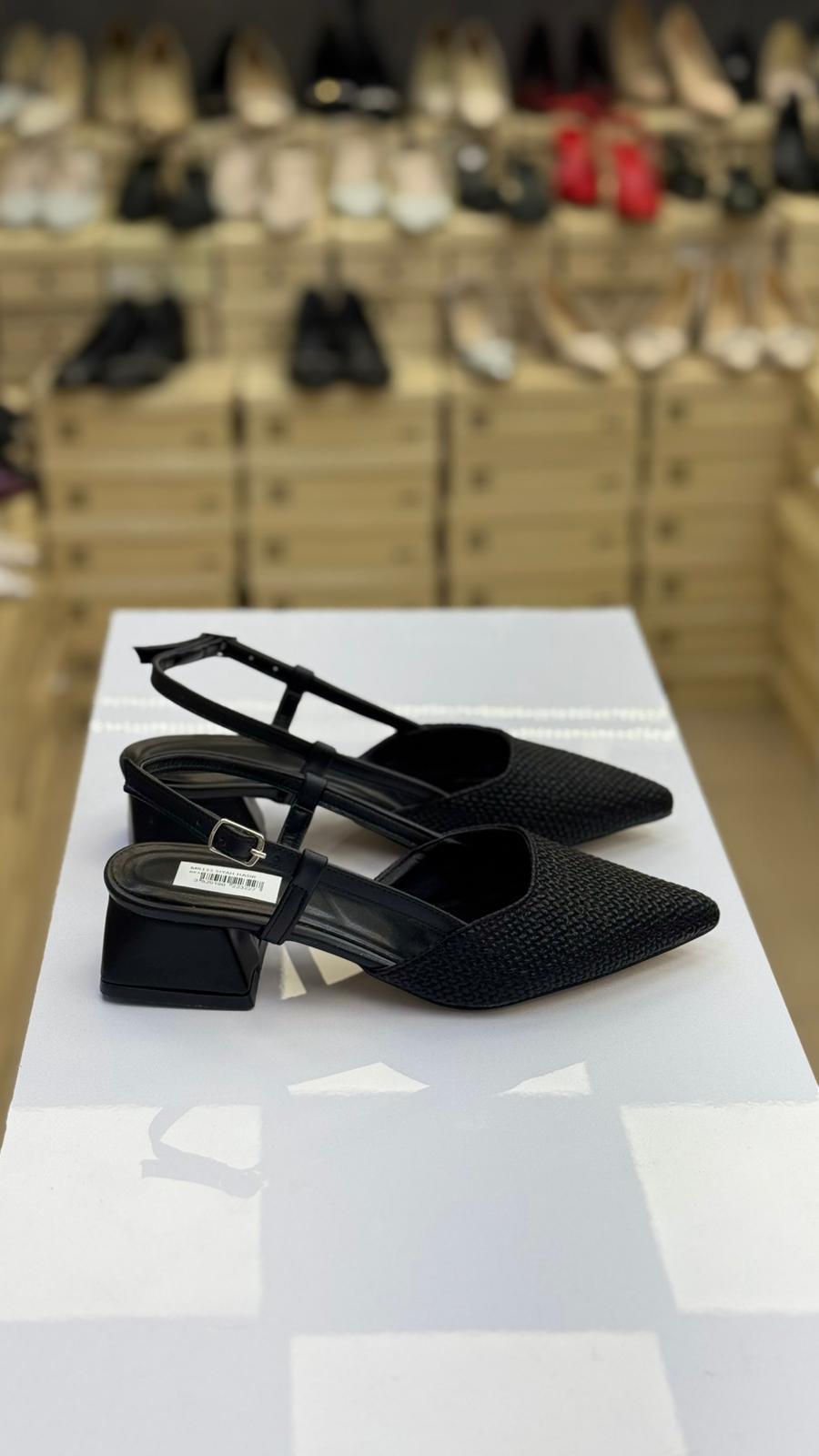 Desenli Arkası Açık Kısa Topuk Kadın Babet Siyah