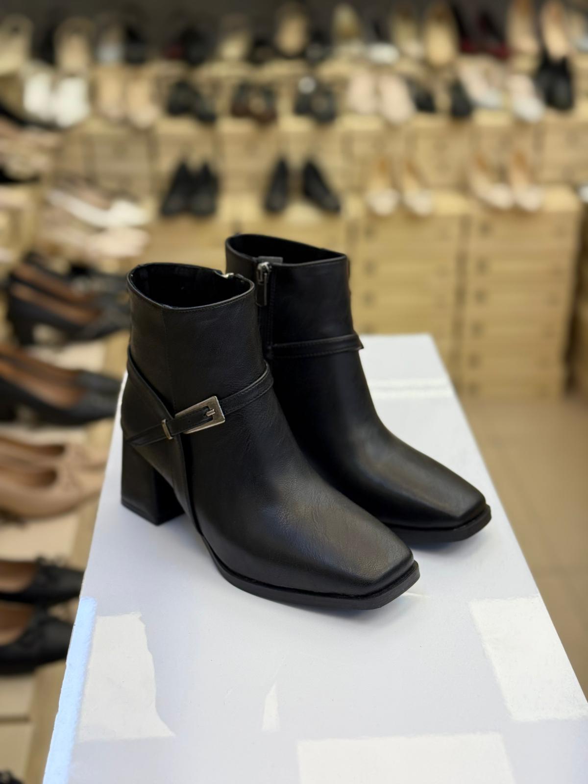 Topuklu Küt Burun Kemerli Bot Siyah CC06-SYH